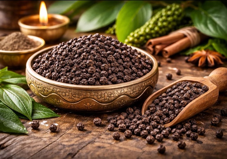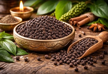 Carefully sourced and processed black pepper, ensuring freshness and aroma.